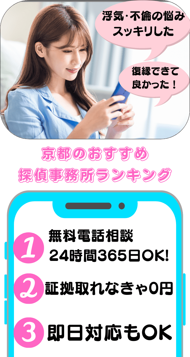このページでは、京都におけるおすすめの探偵事務所や興信所の料金や口コミを詳しく比較し、あなたの浮気調査に最適な業者選びの手助けをします。
